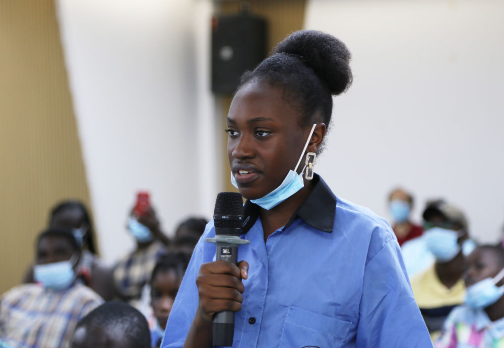 ↑9月6日,在塞內加爾達喀爾的“天宮對話(huà)”活動(dòng)塞內加爾分會(huì )場(chǎng),一名學(xué)生向中國航天員提問(wèn)。新華社記者 王子正 攝