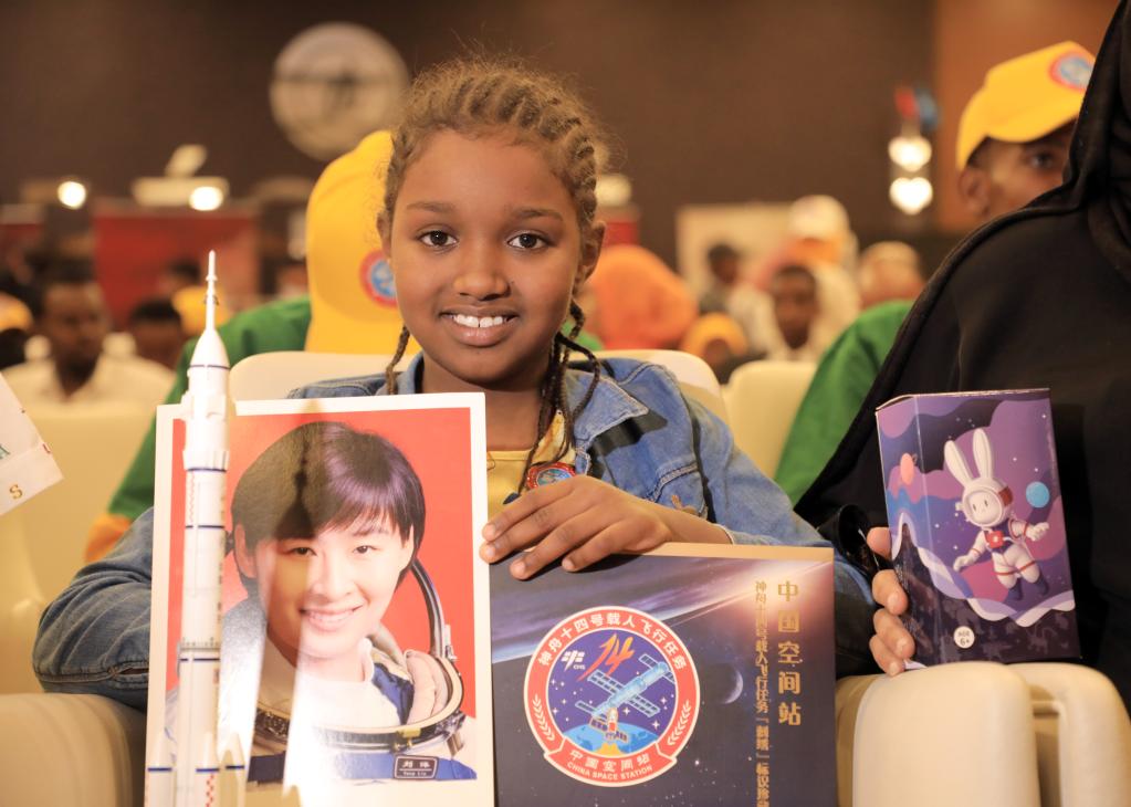 9月6日,在索馬里首都摩加迪沙的“天宮對話(huà)”活動(dòng)索馬里分會(huì )場(chǎng),當地學(xué)生展示活動(dòng)紀念品。新華社發(fā)(扎卡里亞攝)