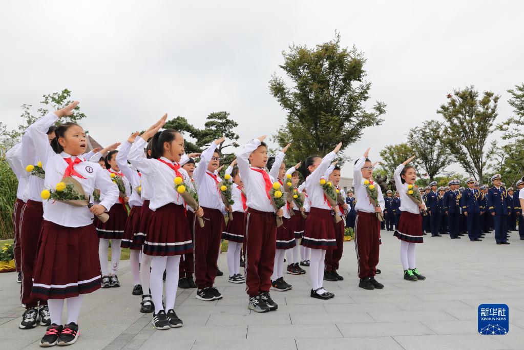 9月30日,少先隊員代表在上海松江烈士陵園內的消防烈士紀念園內參加烈士紀念日活動(dòng)。新華社記者 方喆 攝