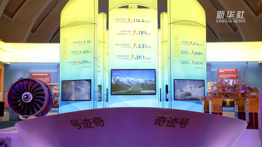 目前,“奮進(jìn)新時(shí)代”主題成就展正在北京展覽館展出。