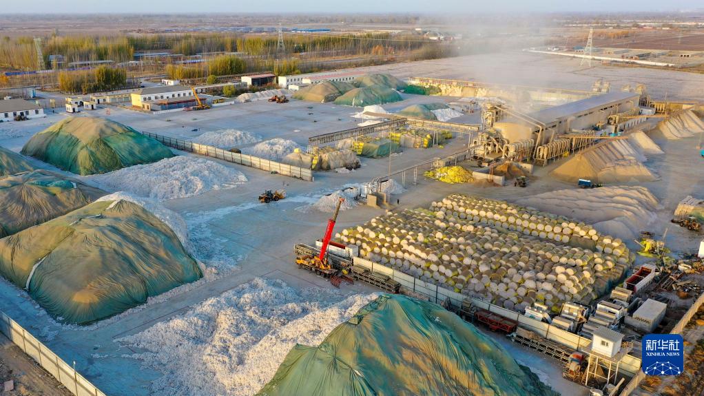 新疆沙雅縣一處棉花收購企業(yè)在進(jìn)行生產(chǎn)(11月11日攝)。