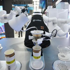 11月15日,在第二十四屆中國國際高新技術(shù)成果交易會(huì )上,一款手沖咖啡機器人在展示沖泡咖啡。新華社記者 毛思倩 攝