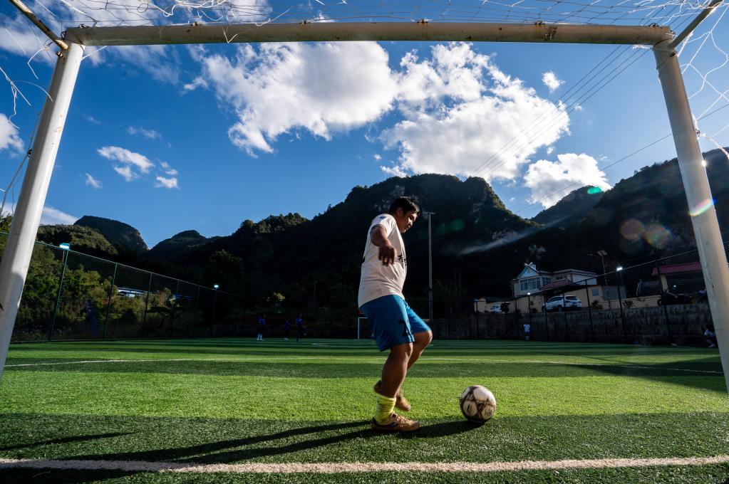 云南省滄源佤族自治縣龍乃村村民在踢足球比賽。