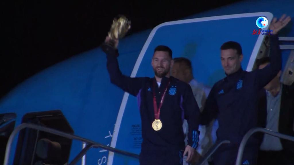 當地時(shí)間20日凌晨2時(shí)許,卡塔爾世界杯冠軍阿根廷隊乘坐專(zhuān)機抵達阿首都布宜諾斯艾利斯埃塞薩國際機場(chǎng)。