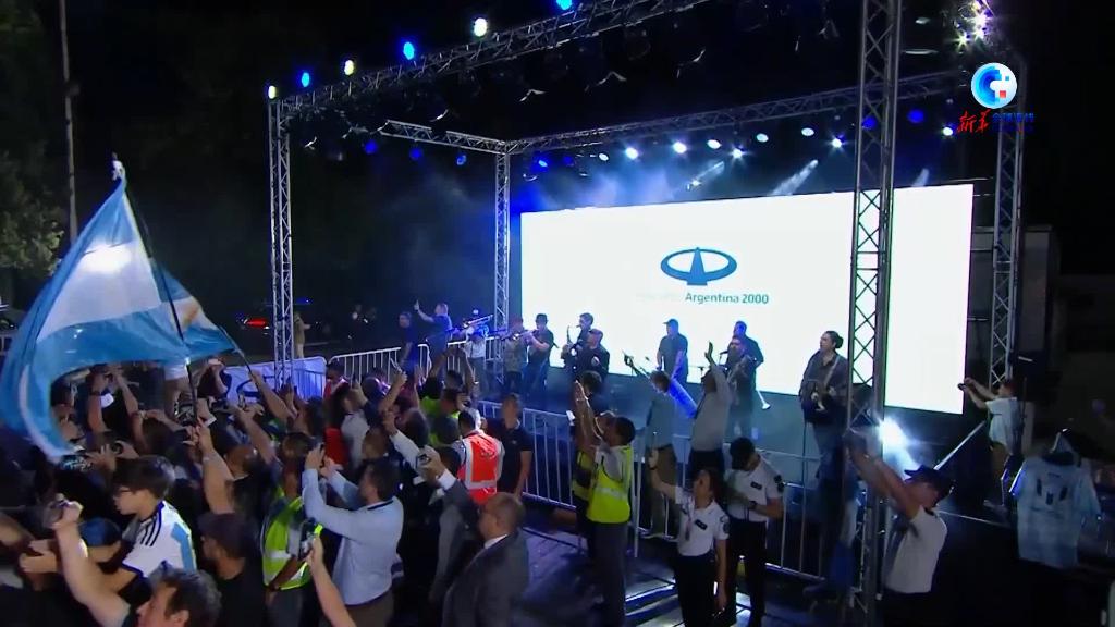 這是阿根廷隊第三次奪得世界杯冠軍,機場(chǎng)以過(guò)水門(mén)禮迎接阿根廷隊回家?,F場(chǎng)樂(lè )隊歡慶,眾多球迷匯集到這里迎接。