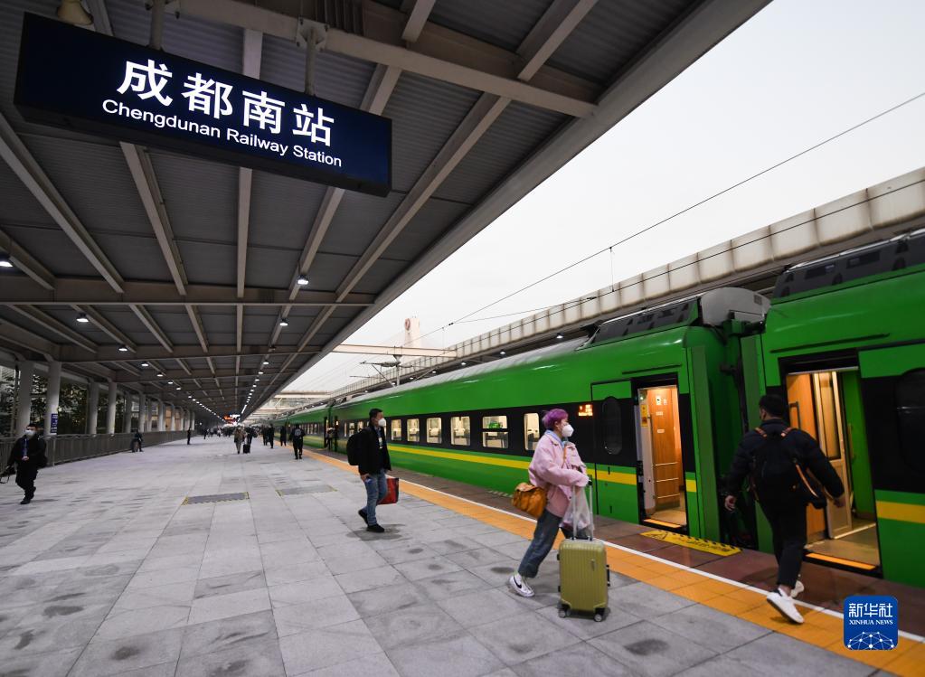12月26日,在成都南站,乘客登上新成昆鐵路首發(fā)列車(chē)。 新華社記者 王曦 攝