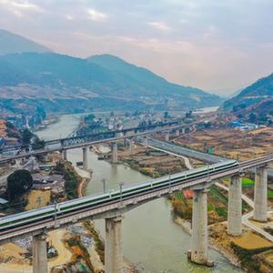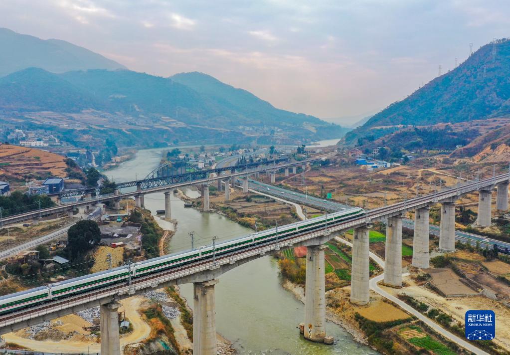 12月24日,一列復興號動(dòng)車(chē)組在四川省冕寧縣境內的新成昆鐵路進(jìn)行開(kāi)通運營(yíng)前的試跑(無(wú)人機照片)。 新華社記者 王曦 攝