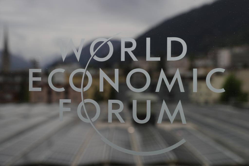 這是2022年5月22日在瑞士達沃斯拍攝的世界經(jīng)濟論壇年會(huì )的標識。新華社記者 鄭煥松 攝