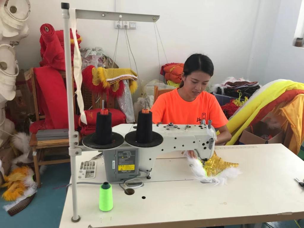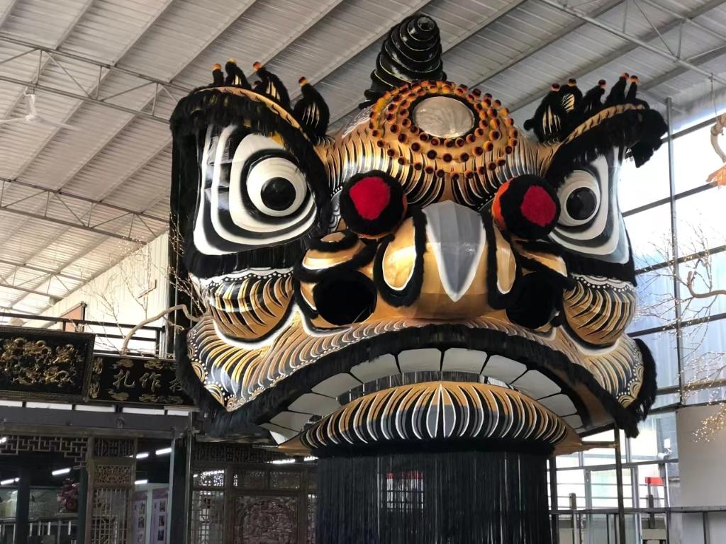 走進(jìn)占地1000多平方米的扎作藝術(shù)館,首先映入眼簾的是一個(gè)巨型的獅頭扎作品,雄獅惟妙惟肖,神氣十足。平日里,學(xué)生們就是在這里制作出一套套精美的獅頭獅袍和文創(chuàng )產(chǎn)品。