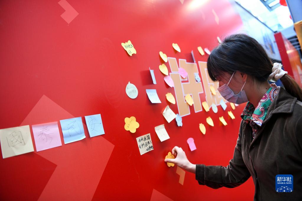 2月6日,一名旅客通過(guò)羅湖口岸抵達深圳后,在許愿墻上留言。新華社記者 梁旭 攝