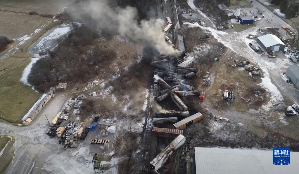 本月3日晚,美國諾??四戏借F路公司一輛貨運列車(chē)駛經(jīng)俄亥俄州東巴勒斯坦鎮時(shí)因機械故障發(fā)生事故,導致約50節車(chē)廂脫軌。10節車(chē)廂運載有毒化學(xué)品,其中5節運載易燃且致癌的氯乙烯。應急人員6日對這些氯乙烯進(jìn)行了“受控釋放”和燃燒,以防發(fā)生大規模爆炸。