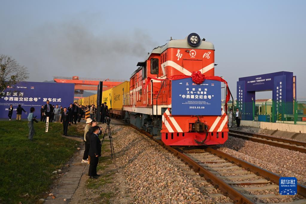 3月9日,義烏—馬德里“中西建交紀念號”中歐班列從浙江義烏鐵路西站開(kāi)出。