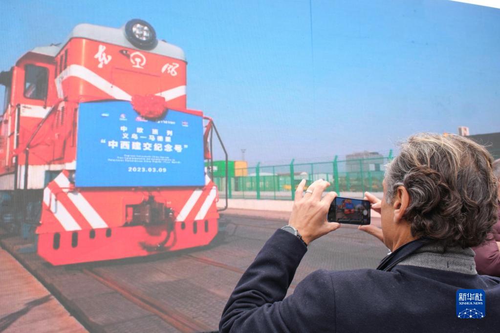 新華全媒+|義烏和馬德里對開(kāi)“中西建交紀念號”班列