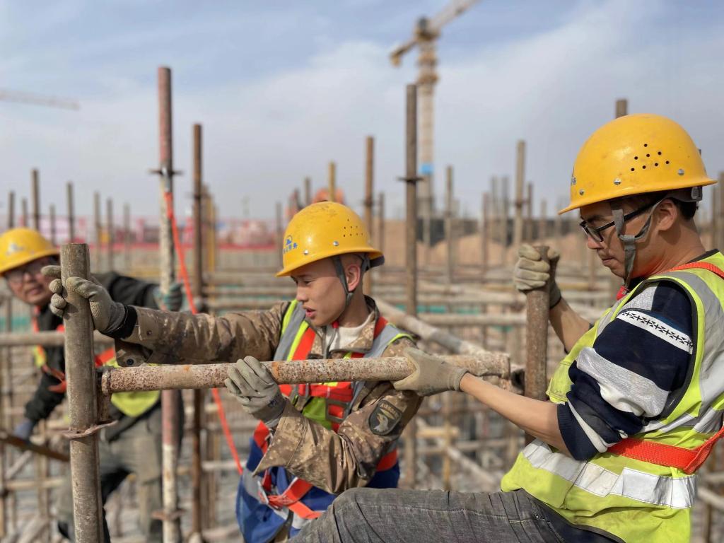 喀什大學(xué)東城校區項目現場(chǎng),中建三局施工人員正在進(jìn)行主體結構施工。新華社發(fā)(馮躍龍 攝)