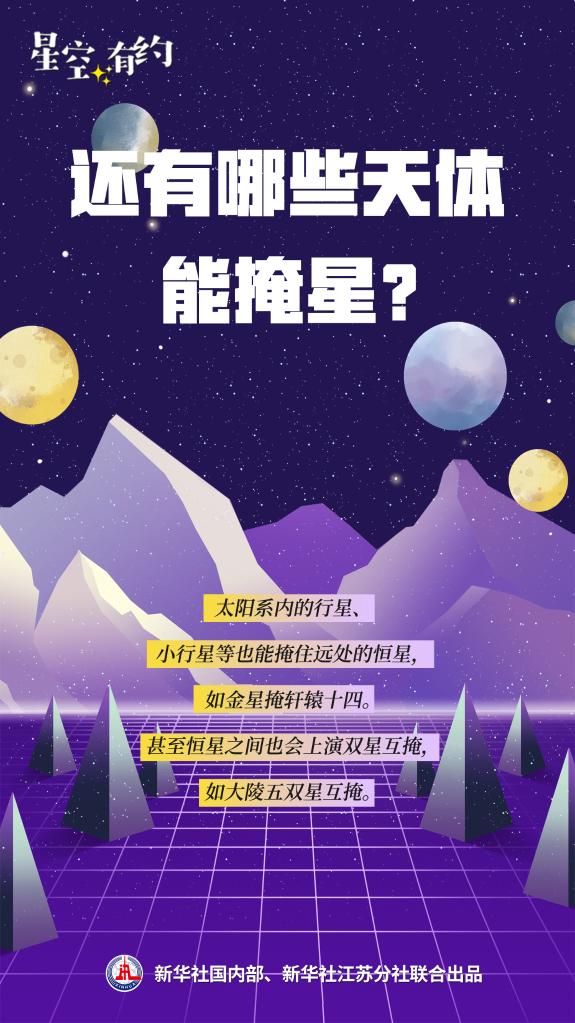 事實(shí)上,太陽(yáng)系內的行星、小行星等也能掩住遠處的恒星,如金星掩軒轅十四。甚至恒星之間也會(huì )上演雙星互掩,如大陵五雙星互掩。這一類(lèi)天象在天文學(xué)上被統稱(chēng)為掩星。