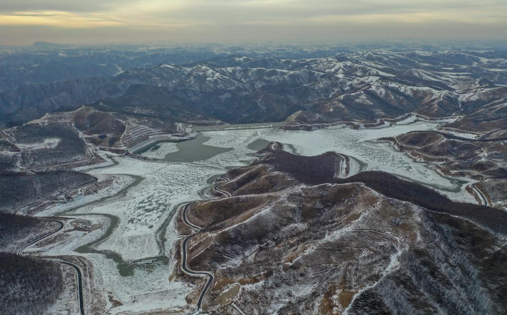 2月21日拍攝的國網(wǎng)新源河北豐寧抽水蓄能電站上水庫(無(wú)人機照片)。新華社記者 楊世堯 攝