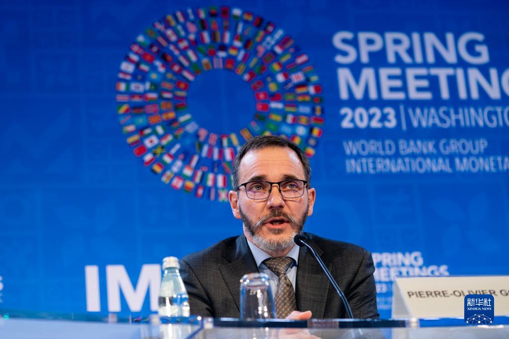 4月11日,在美國華盛頓,國際貨幣基金組織(IMF)經(jīng)濟顧問(wèn)兼研究部主任皮埃爾-奧利維耶·古蘭沙出席新聞發(fā)布會(huì )。新華社記者 劉杰 攝