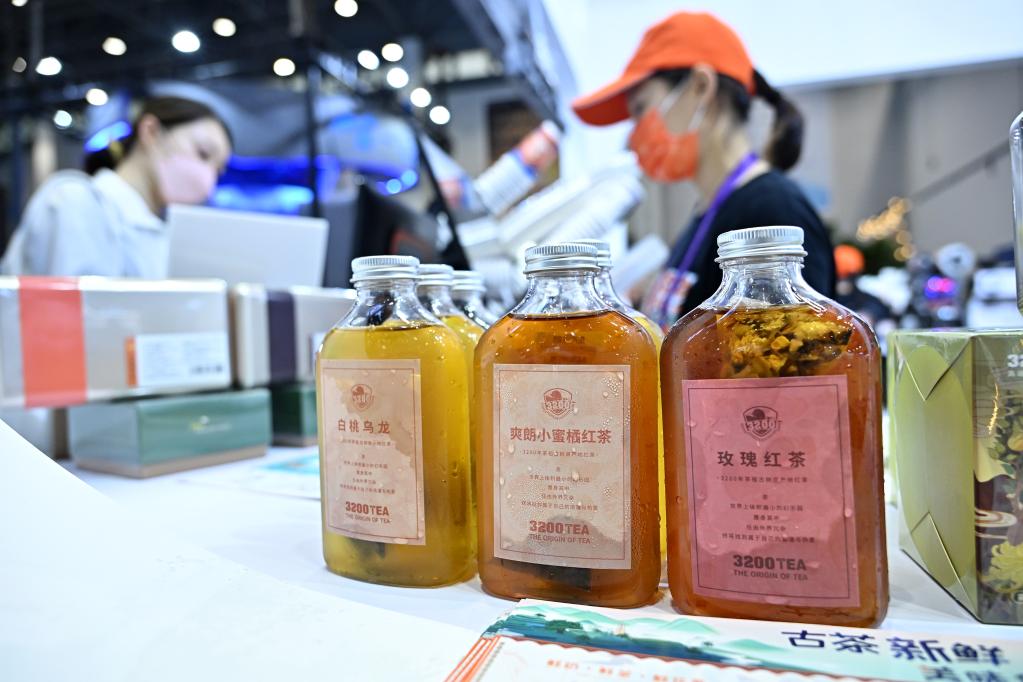 4月12日,消費者在消博會(huì )上了解茶飲。新華社記者李鑫攝