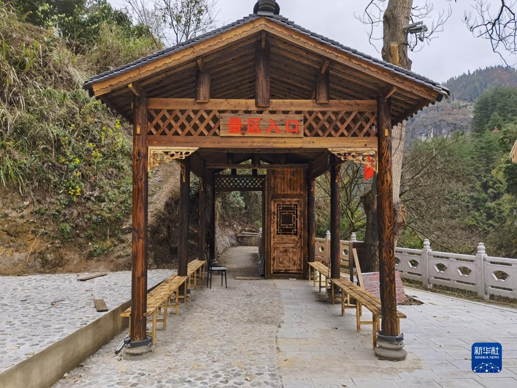 這是2023年3月18日拍攝的正在升級改造的貴州省開(kāi)陽(yáng)縣香火巖瀑布景區入口(手機照片)。新華社記者 向定杰 攝