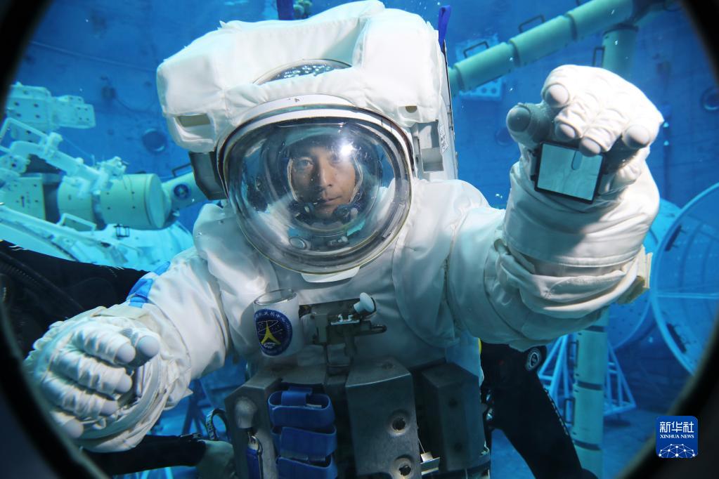 大多數航天員面對水下訓練都需要克服各種各樣的挑戰,有狹小密閉空間帶來(lái)的束縛感,有水下波紋導致的眩暈感,以及體力不支等等。朱楊柱遇到的挑戰則是上腳限位器。將厚重的鞋子近乎盲操作地卡進(jìn)腳限位器2厘米左右的卡槽縫里,原本就是個(gè)高難度的技術(shù)活。他的腳型比較小,穿著(zhù)艙外服配套的鞋子后,腳在鞋里晃蕩,上腳限位器更加困難。經(jīng)過(guò)反復試驗,他穿上兩雙厚襪子、兩雙薄襪子后,鞋子終于合腳了。