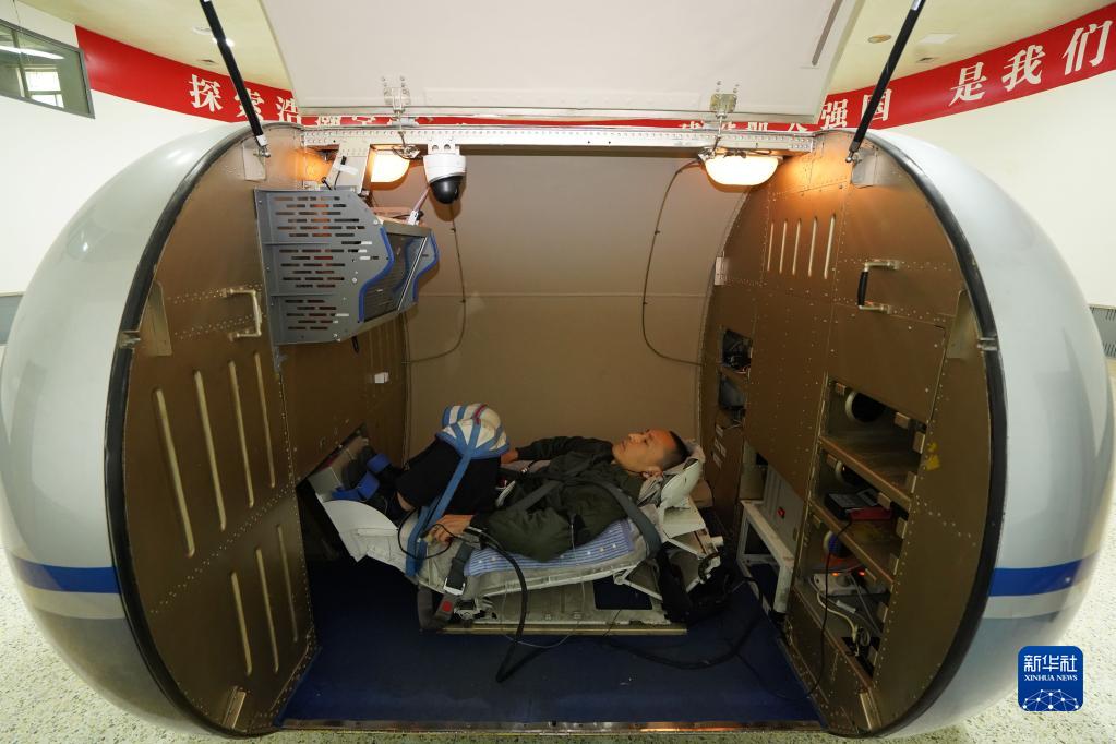 神舟十六號航天員乘組進(jìn)行醫學(xué)研究項目操作(2023年3月9日攝)。新華社發(fā)(徐部 攝)