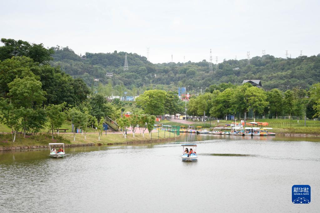 6月1日,瀘州市民在漁子溪濕地公園內游玩。