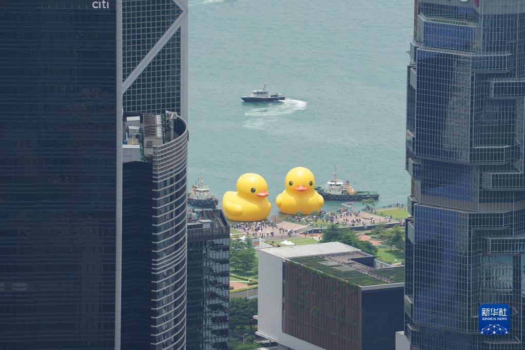 當日,兩只高約18米的“大黃鴨”亮相香港維多利亞港。這是闊別10年后,“大黃鴨”再度到港。據悉,兩只“大黃鴨”將于6月10日面向公眾開(kāi)放,展期約兩周。