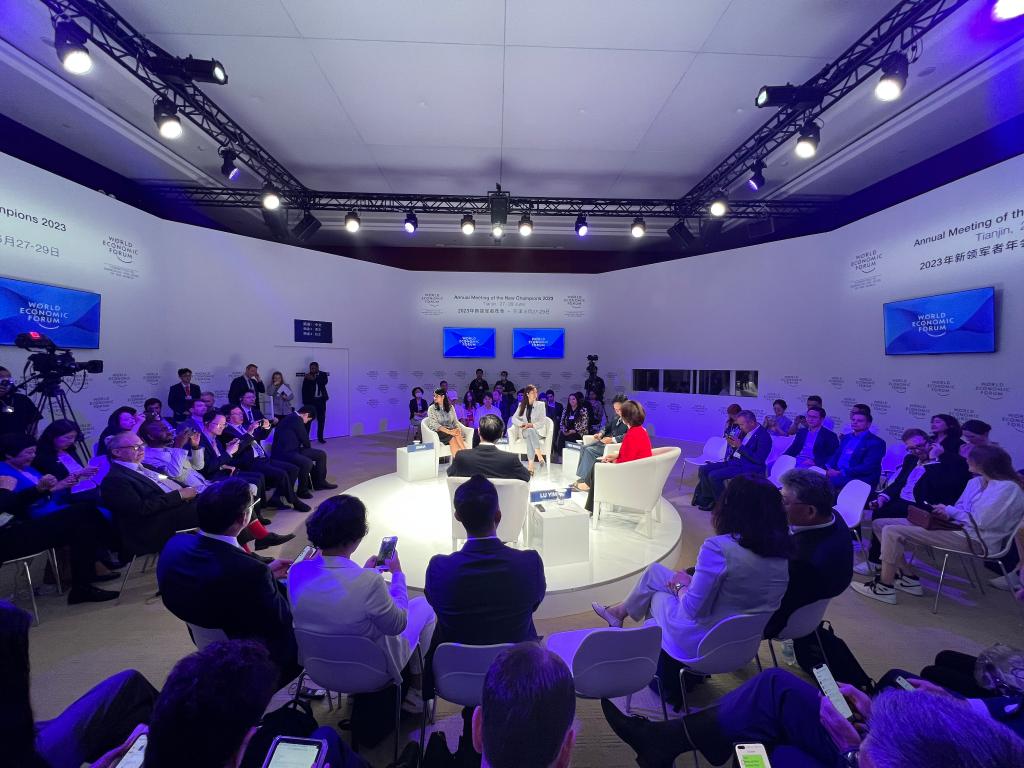 第十四屆夏季達沃斯論壇現場(chǎng)。新華社記者李鑫 攝