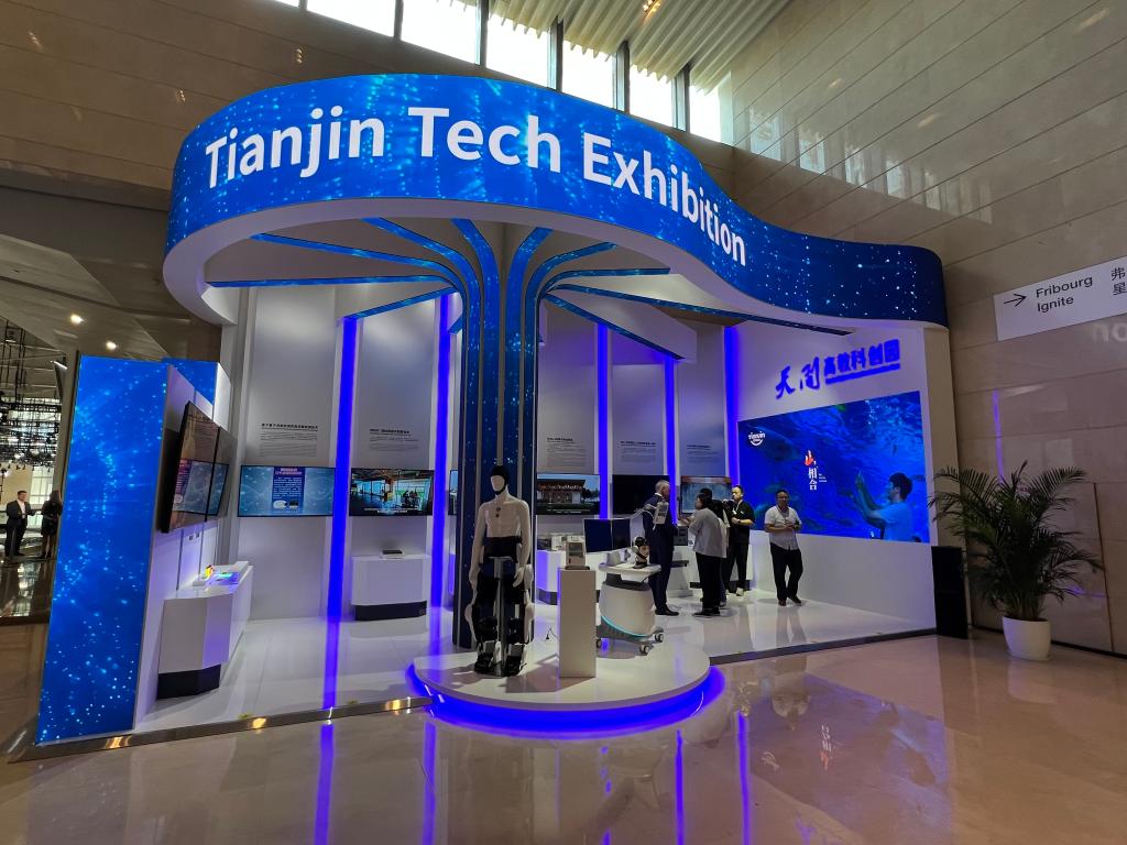 展區內的腦機接口等研發(fā)領(lǐng)域新成果吸引嘉賓駐足。新華社記者白佳麗 攝