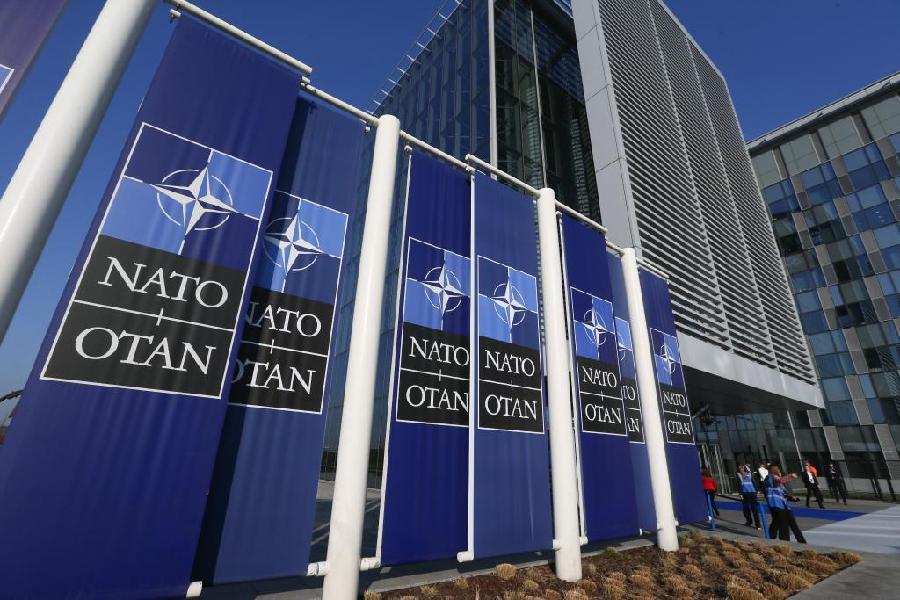 2022年3月24日,工作人員在比利時(shí)布魯塞爾的北約總部忙碌。新華社記者鄭煥松攝
