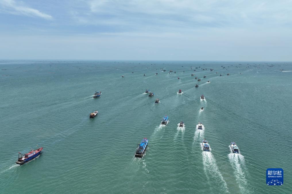 8月16日上午,在海南省臨高縣新盈鎮新盈中心漁港里,密密麻麻的紅色船旗隨風(fēng)飄揚,1300余艘漁船整裝待發(fā)。12時(shí),2023年南海伏季休漁期結束。
