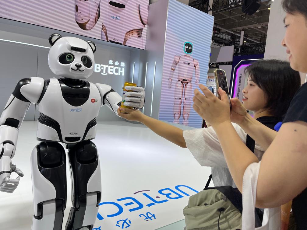 “天真熱,我口渴了?!爆F場(chǎng)工作人員說(shuō)完,熊貓機器人“優(yōu)悠”立即走向冰箱,取出了一杯飲料,動(dòng)作非常流暢,不僅能理解人類(lèi)語(yǔ)言背后的含義,還能自主識別物品,擁有較強的控制能力和運動(dòng)能力。這款機器人前不久剛參與了第31屆世界大學(xué)生夏季運動(dòng)會(huì ),在閉幕式上與50多名演員合作演出。