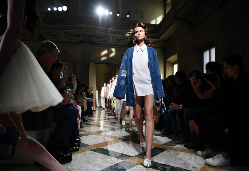 9月24日,模特在意大利米蘭時(shí)裝周上展示含有貴州苗繡元素的設計時(shí)裝。新華社記者金馬夢(mèng)妮攝