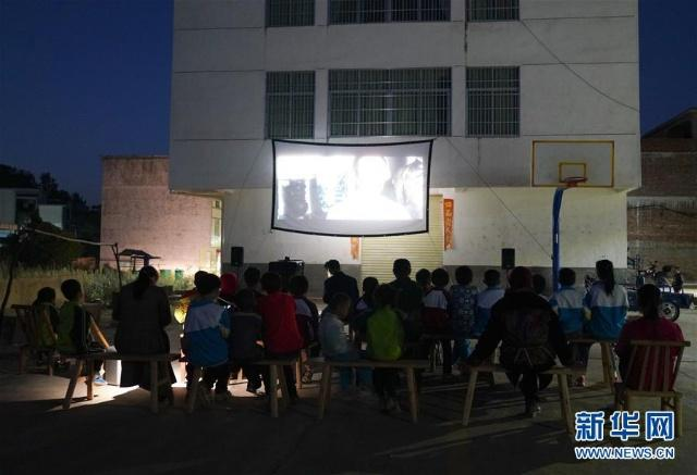 2018年10月30日,寬田鄉山下村的百姓在觀(guān)看曾紀連為他們放映的電影。 新華社記者 胡晨歡 攝