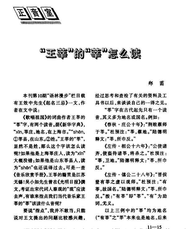 如果這個(gè)字用作人名怎么讀?比如《歌唱祖國》的詞曲作者“王莘”的“莘”。