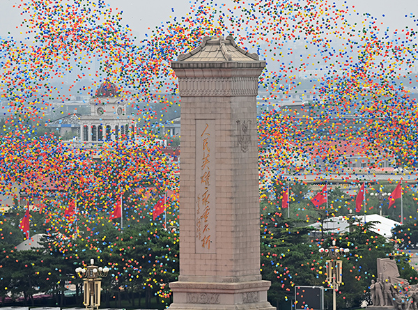 7月1日上午,慶祝中國共產(chǎn)黨成立100周年大會(huì )在北京天安門(mén)廣場(chǎng)隆重舉行。這是慶祝大會(huì )現場(chǎng)放飛氣球。新華社記者 李響 攝