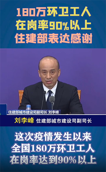 去年3月份一次國務(wù)院聯(lián)防聯(lián)控機制新聞發(fā)布會(huì )上的數據顯示,疫情發(fā)生以來(lái)全國180萬(wàn)環(huán)衛工人在崗率達90%以上,較往年同期80%~85%的到崗率有明顯提升,其中湖北省全天作業(yè)環(huán)衛工人超過(guò)8萬(wàn)人。