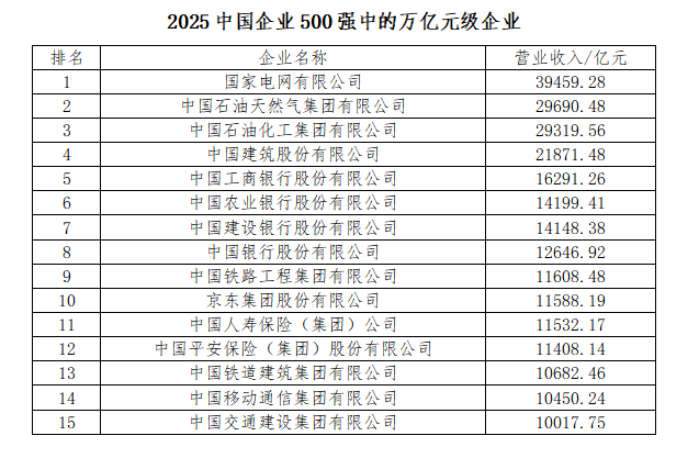 “2025中國企業(yè)500強”榜單發(fā)布 15家企業(yè)超過(guò)萬(wàn)億規模