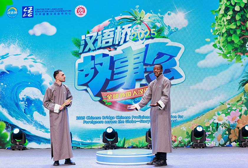 在2025“漢語(yǔ)橋”全球外國人漢語(yǔ)大會(huì )故事會(huì )西南區預賽上,來(lái)自尼日利亞的林丹、伊朗的道明寺兩位選手用中文講相聲,分享在學(xué)中文過(guò)程中的“尷尬事兒”。