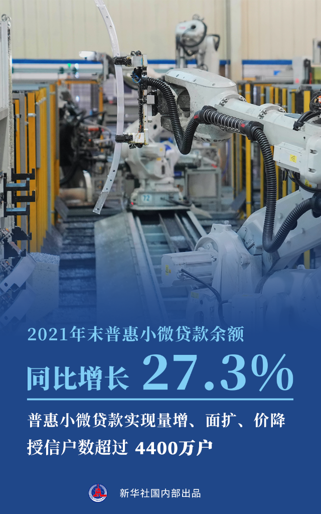加大對實(shí)體經(jīng)濟特別是小微企業(yè)、科技創(chuàng )新、綠色發(fā)展的支持力度始終是金融工作的重中之重。2021年末,制造業(yè)中長(cháng)期貸款余額同比增長(cháng)31.8%,比各項貸款增速高20.2個(gè)百分點(diǎn);普惠小微貸款余額同比增長(cháng)27.3%,普惠小微貸款授信戶(hù)數超過(guò)4400萬(wàn)戶(hù)。