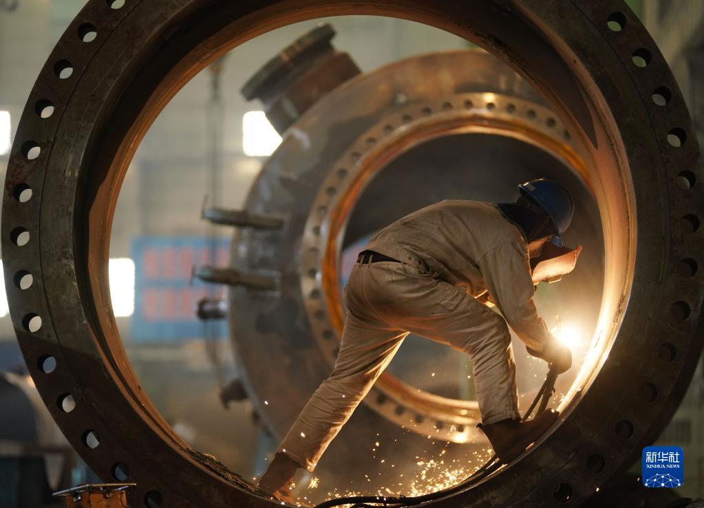 4月14日,在哈電集團哈爾濱鍋爐廠(chǎng)有限責任公司車(chē)間,工人進(jìn)行生產(chǎn)作業(yè)。新華社記者 王建威 攝