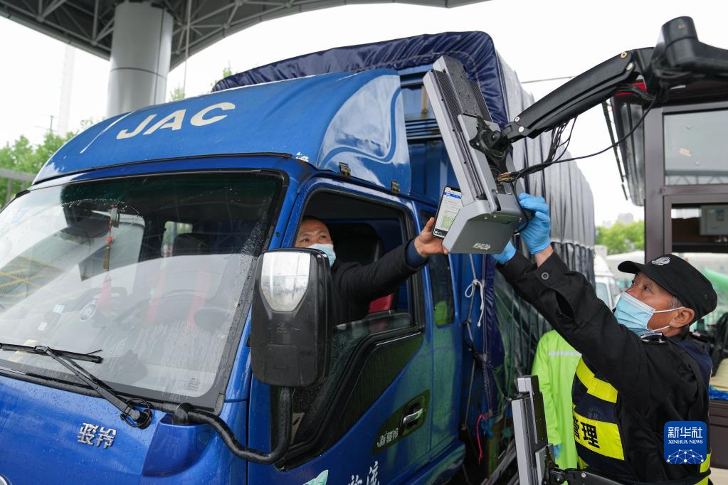 4月13日,在合肥百大周谷堆大興農產(chǎn)品物流園,司機在智能化門(mén)禁系統上掃碼進(jìn)入。該園建立集測溫、核驗安康碼、數據收集等功能的智能化門(mén)禁系統,進(jìn)場(chǎng)駕乘人員不用下車(chē)即可快速核驗,實(shí)現防疫測溫智能化、人車(chē)追溯數據化。新華社記者 杜宇 攝