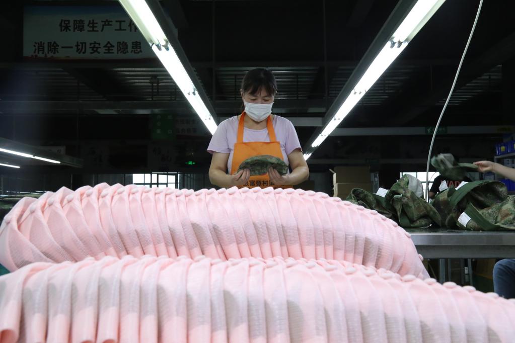 河南淮陽(yáng)瑞能服帽生產(chǎn)車(chē)間。(新華社發(fā))