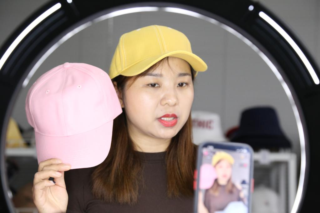 河南淮陽(yáng)瑞能服帽直播帶貨間。(新華社發(fā))