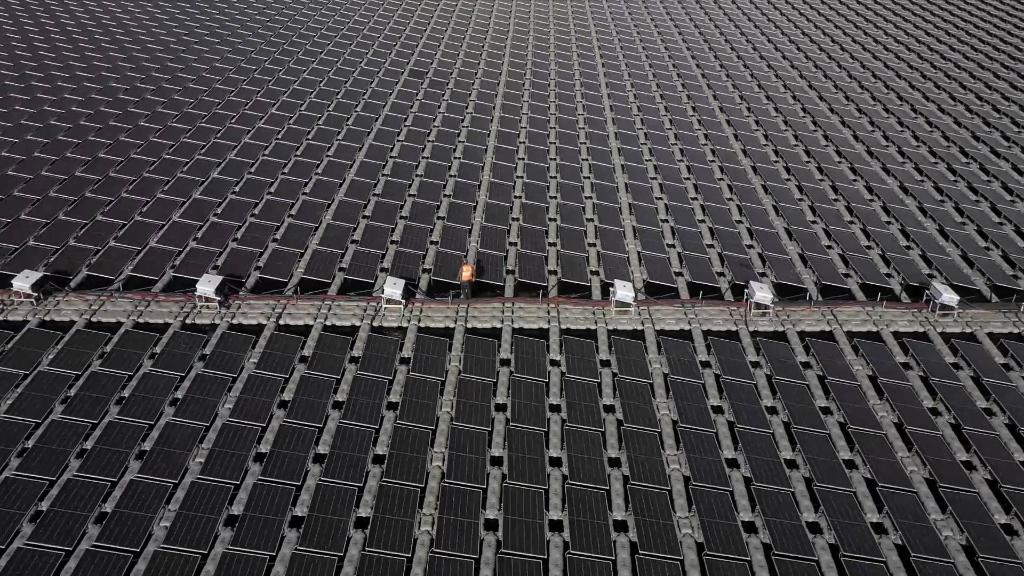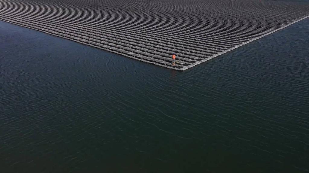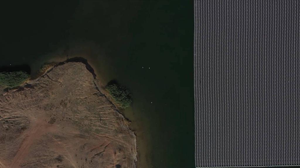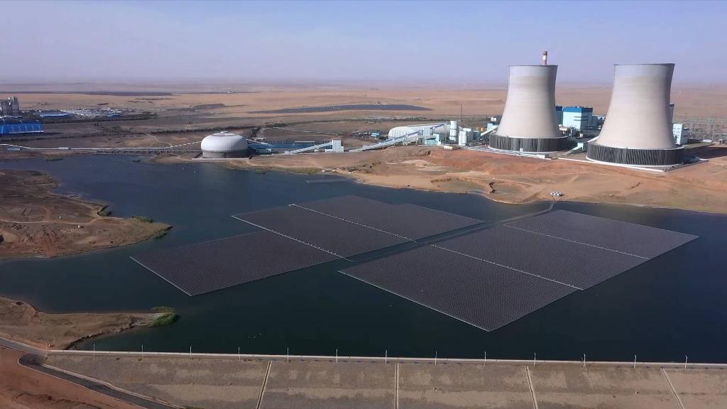 該項目利用礦井疏干水聚集湖的湖面進(jìn)行建設,是西北首個(gè)水面漂浮電站、中國首個(gè)礦井水水域漂浮電站。