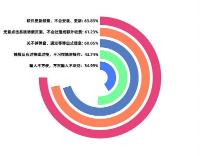 “智能手機什么都好,就是很多功能弄不明白”“使用26鍵輸入法時(shí),我手指頭粗,經(jīng)常一按按倆”“網(wǎng)頁(yè)中突然彈出來(lái)的按鈕你都不能隨便點(diǎn),點(diǎn)了之后它不就得問(wèn)你要錢(qián)嗎?”“一不小心就會(huì )點(diǎn)到廣告,還不好關(guān)”……