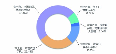 在討論互聯(lián)網(wǎng)的適老化時(shí),很少有人注意到老年群體也面臨著(zhù)“成癮”危局。從問(wèn)卷結果來(lái)看,有59.57%的老年人有網(wǎng)絡(luò )成癮的趨勢,其中,“非常嚴重,很依賴(lài)手機,對生活有較大影響” 的占2.84%,“比較嚴重,每天習慣性玩手機”的占8.27%,“有一點(diǎn),空閑時(shí)間就想玩手機”的占48.46%。幾位受訪(fǎng)老人均表示對手機形成了依賴(lài),有老人反映頻繁使用手機影響眼睛、脊椎的健康等。很多老年人在智能手機的“聽(tīng)書(shū)”“看新聞”“短視頻”等互聯(lián)網(wǎng)功能中再次找到了自己的興趣點(diǎn),但由于相關(guān)健康知識科普不足,社會(huì )關(guān)注不夠,一些老年人深陷“成癮”泥潭。