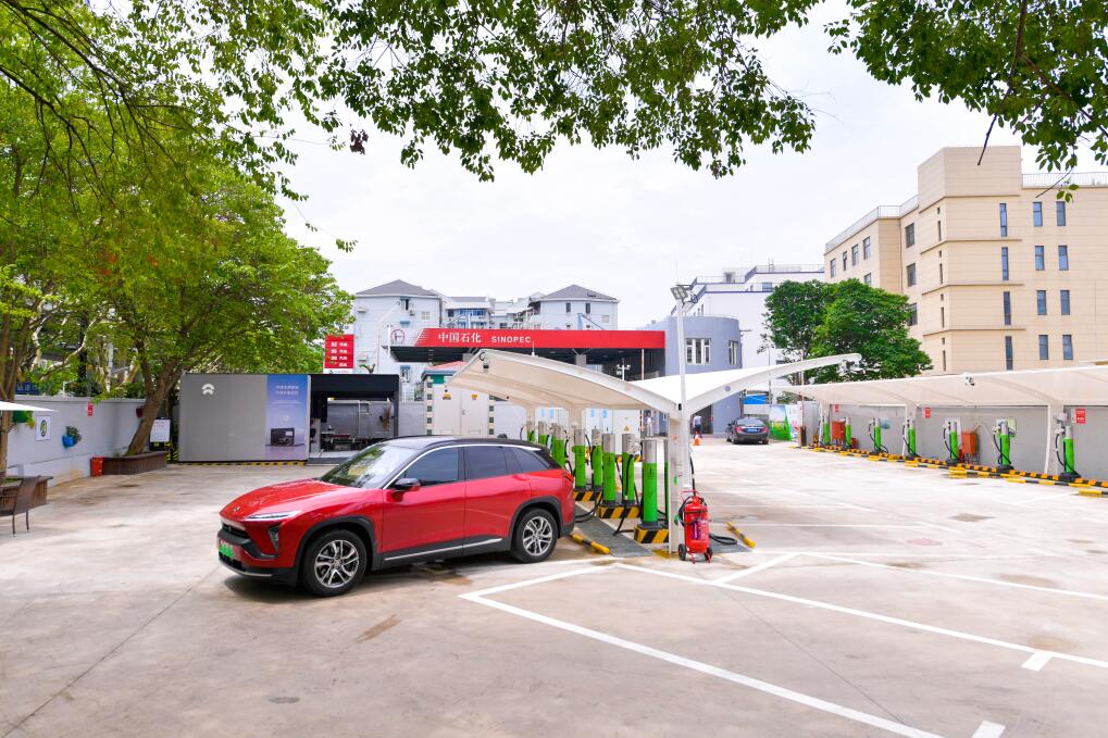 上海市靜安區中山北路上,中國石化與蔚來(lái)合作的一座換電站。(受訪(fǎng)者供圖)