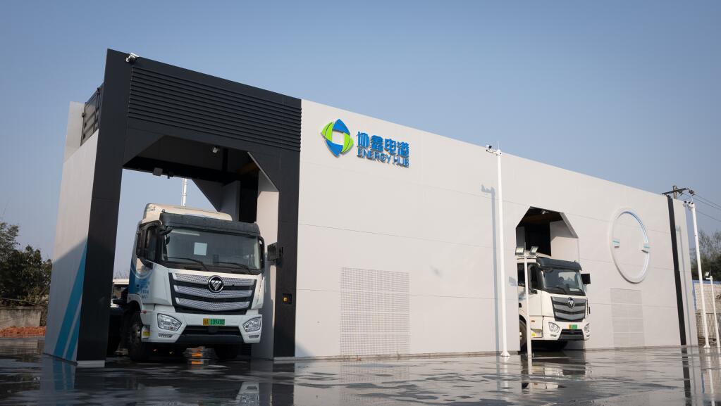 協(xié)鑫電港位于成都的首座自主研發(fā)的雙通道重卡換電港。(受訪(fǎng)者供圖)