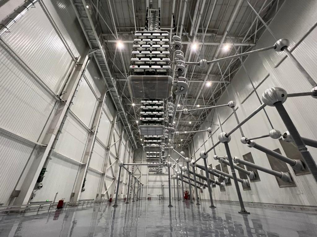 布拖換流站充滿(mǎn)科幻感的換流廠(chǎng)房。新華社記者盧宥伊 攝